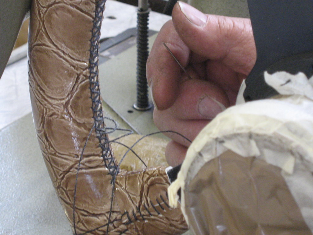 Si rivestono in pelle volanti auto, manopole cambio o altri accessori con cucitura artigianale.