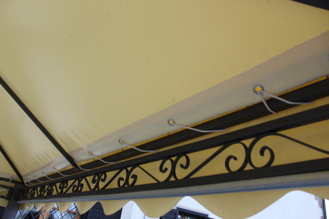 Internamente si abbelliscono strutture con sottoteli leggeri e drappeggiati ideali per locali pubblici.